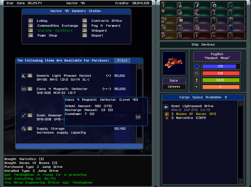 While rogue-like games are not true role-playing games they do focus on a player generated character, and in Approaching Infinity that character is the starship captain and his (or her) starship. Each starship has its initial strengths and weaknesses, but are upgradable with new and superior components as the captain's career unfolds.